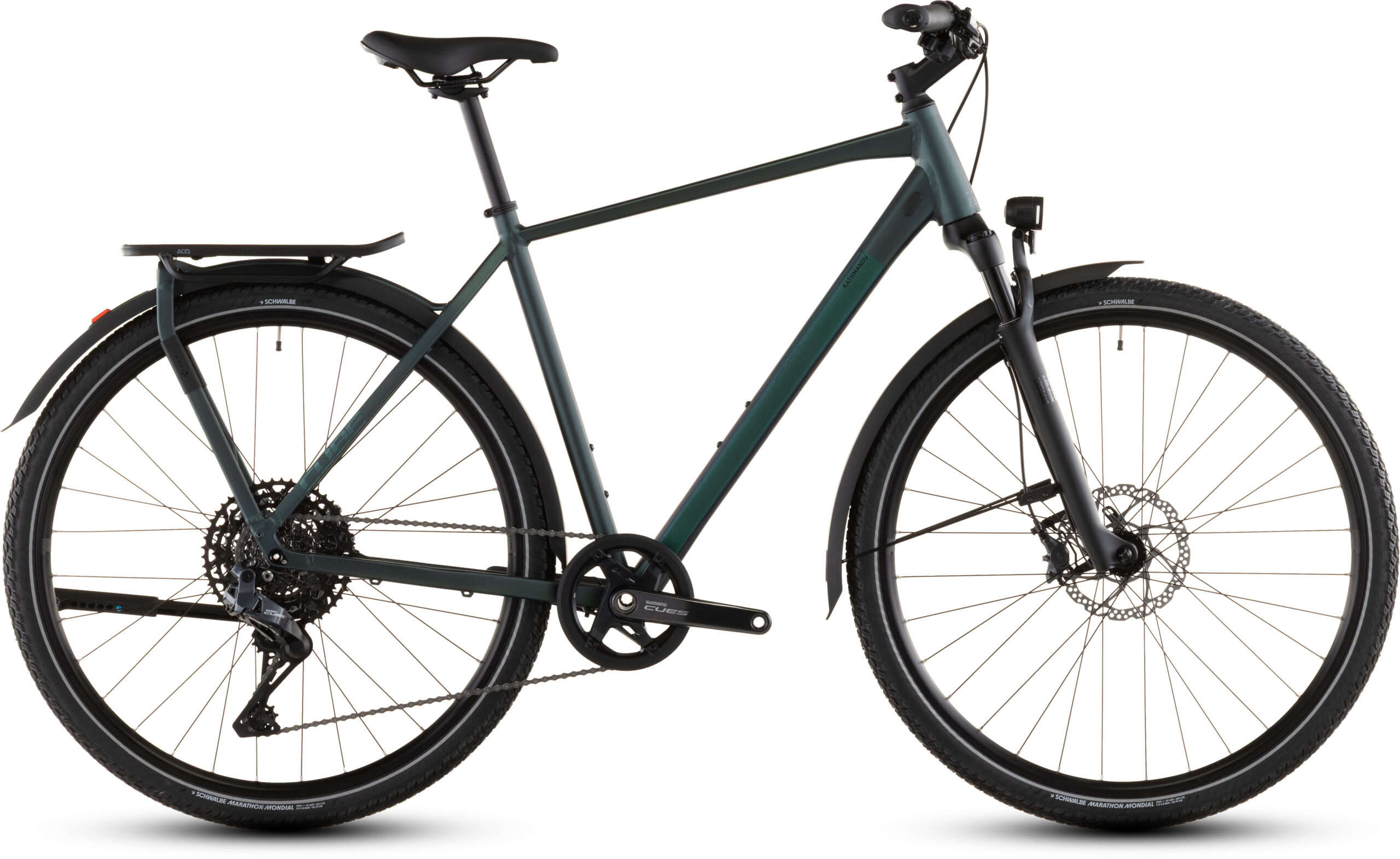 Con un peso de 15,5 kg, esta bicicleta también incluye detalles como luces delanteras y traseras, guardabarros, pata de cabra y portabultos integrado, que la hacen ideal para tus desplazamientos diarios o tus aventuras de fin de semana. Descubre la Cube Kathmandu SLT duskwood´n´goblin y disfruta de un viaje cómodo, seguro y lleno de emociones.