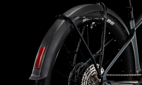 La Reaction Hybrid Allroad está llena de detalles sutiles, y no nos referimos solo a los guardabarros, el portabultos, el juego de luces y la pata de cabras incluidos. Con la batería PowerTube de 800 Wh oculta con discreción y la unidad de accionamiento Bosch CX alojada con seguridad, bajo sus líneas esbeltas se esconden multitud de funcionalidades inteligentes. Está preparada para PowerMore, es decir, es fácil añadir hasta 250 Wh de capacidad de batería adicional. La abrazadera de tija de sillín integrada y la colocación de los cables completan la estética limpia, mientras que la patilla de cambio UDH se asegura de que esté lo más preparada posible para cambios futuros. Dispone además de punto de montaje integrado para guiacadenas y, con el sistema SizeSplit, es fácil encontrar el ajuste perfecto para todo tipo de ciclistas. Hemos pensado en todo para que tú solo te encargues de ir en bici.